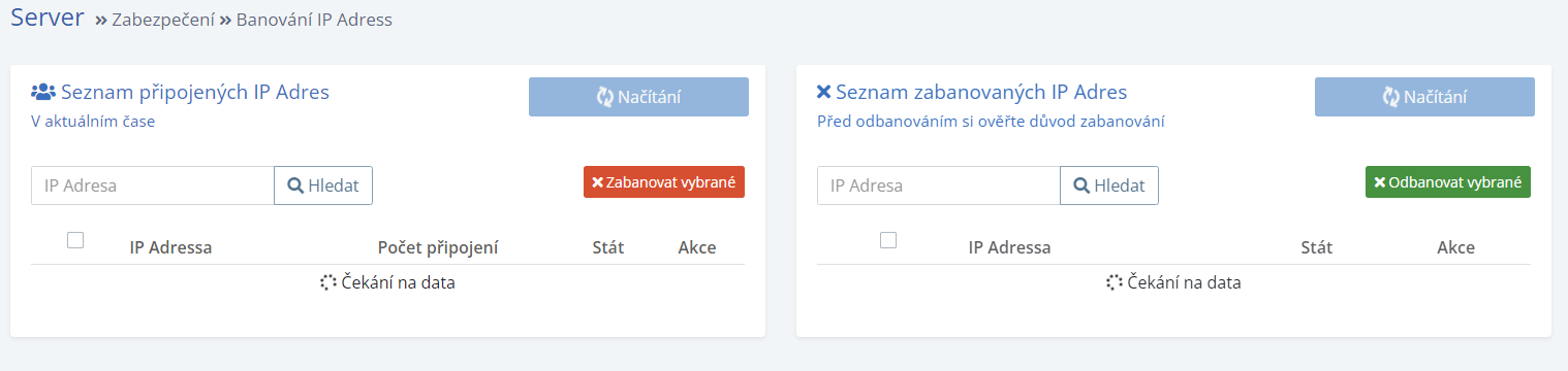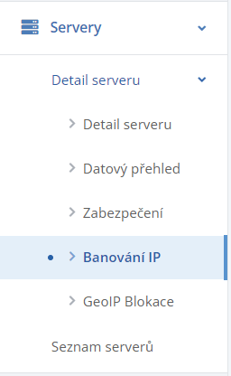 Možnost zablokovat přístup ip adrese naleznete pod serverem jako položku „Blokování IP„.