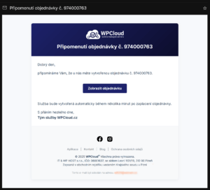 - E-maily s objednávkami a výzvami k úhradě nyní přicházejí přímo z našeho systému WPCloud®.