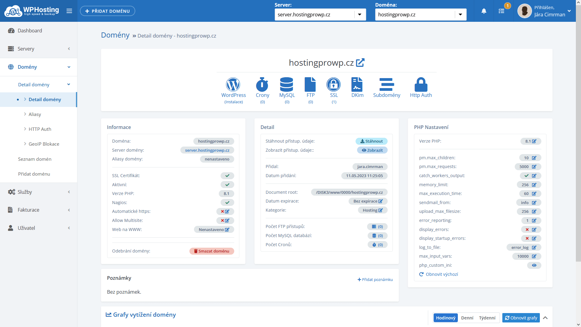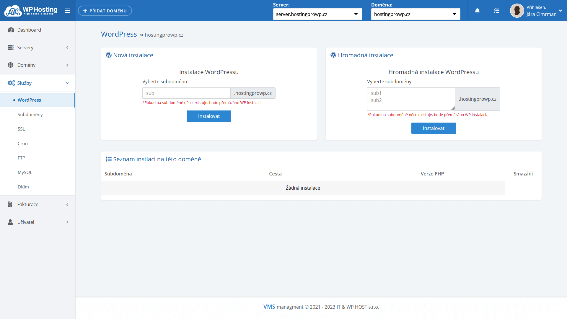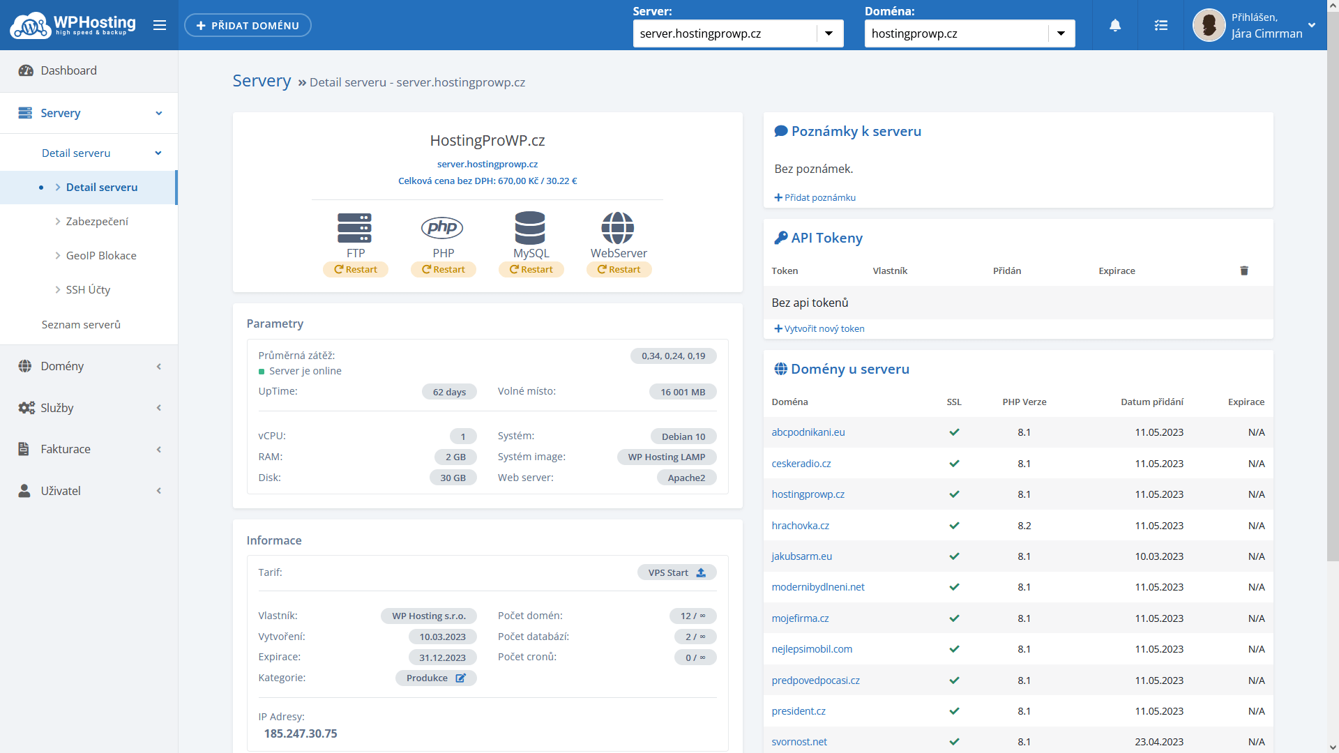 Pod značkou WP Hosting ® jsme vytvořili webovou aplikaci pro komfortní správu webového serveru. Získáváte online přehled o svém serveru s možností spravovat základní služby bez nutnosti znát principu správy serveru jako administrátor.
