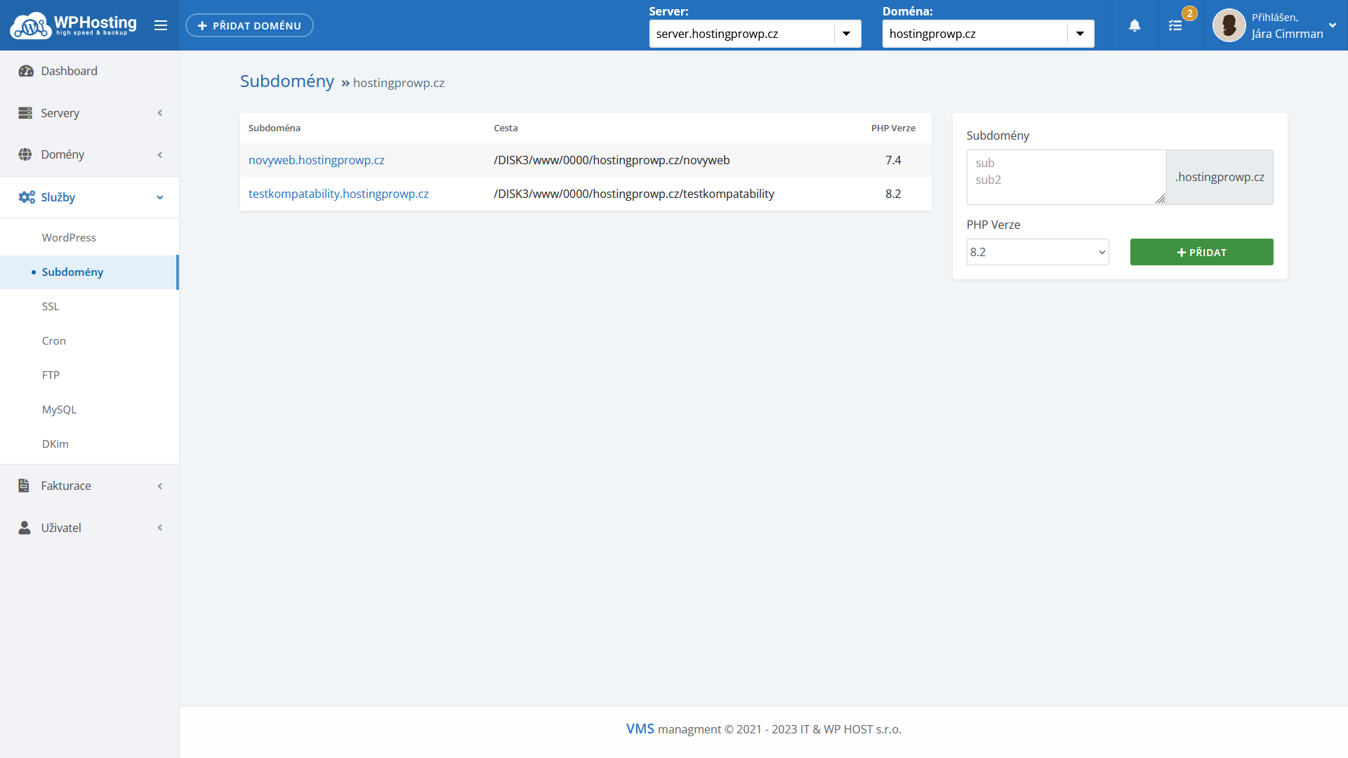 Pravidelně představujeme aktualizace webového rozhraní pro správu managed serverů.